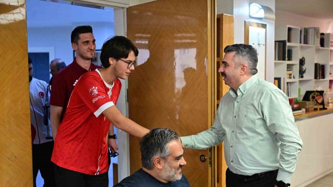 Katıldıkları uluslararası turnuvalarda ülkemizi ve Yıldırımı gururlandıran Toprak Aras, Yusuf İslam Kara, Batın Naniş ve Enes Gezer’i makamında ağırlayan Yıldırım Belediye Başkanı Oktay Yılmaz, başarılı sporcuları tebrik etti. Yıldırım’ın spor kenti kimliğini güçlendirmek için çalıştıklarını vurgulayan Başkan Oktay Yılmaz; "Gerek tesisleşme hamlemiz gerekse de spor kurslarımız ve eğitimlerimizle Yıldırım’ı adeta bir spor kentine çevirdik. Hamdolsun bu yatırımlarımız da meyvelerini veriyor. Sporcularımız katıldıkları ulusal ve uluslararası turnuvalarda ülkemizi ve bizleri gururlandıran önemli başarılara imza atıyorlar. Bu başarılar eminim ki, çocuklarımıza ve gençlerimize ilham olacak bir yol açacaktır. Ben tüm sporcularımızı tebrik ediyor ve başarılarının devamını diliyorum. Spora ve sporcuya olan desteğimiz bundan sonra da artarak devam edecek ifadelerini kullandı.