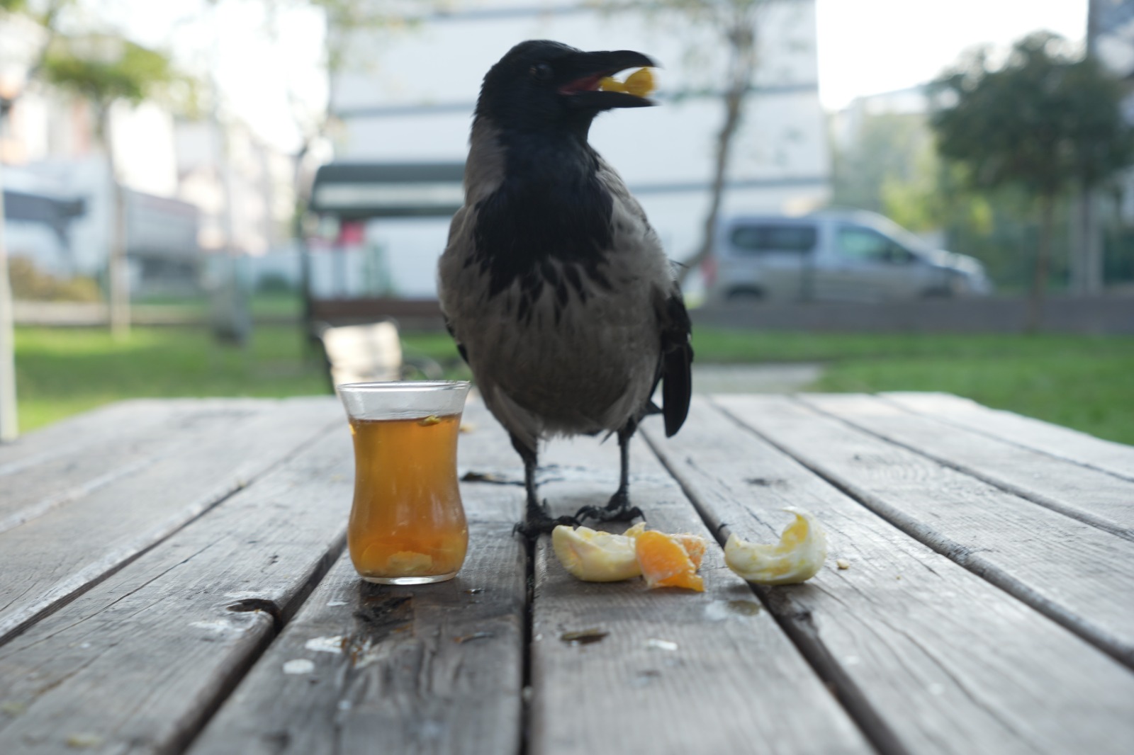 Ömer Tek, karganın özel beslenme alışkanlıklarına da dikkati çekerek, "Bazen onunla markete gidiyoruz. Beğendiği ürüne vurup alıyor. Çoğunlukla ciğer yer, et yer, yumurtanın sarısını yer, balık yer, ne olsa yer, helva yer. Böyle şeyleri yiyor. Normal ekmek pek yemez, alışmamış. Mandalina yiyor, organik mandalina yiyor. Organik olan her şeyi yiyor ama organik olmayan hiçbir şey yemiyor. Çok akıllı bir hayvan. Zarar gelecek olan şeyleri de asla yemez. Ağzına koyar, atar dışarıya" diye konuştu.