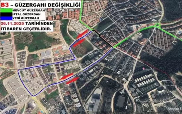 Güncellemeler bununla sınırlı kalmayacak. B3 numaralı hattın güzergâhı ise 26 Kasım tarihinden itibaren değişecek. BURULAŞ, yapılan düzenlemelerin ulaşımda verimliliği artırmayı ve vatandaşların hatlara erişimini kolaylaştırmayı amaçladığını bildirdi.