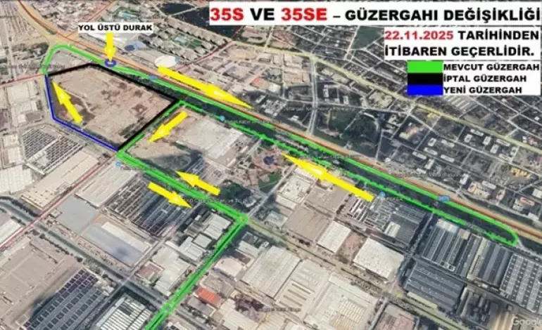 BURULAŞ, kent içi ulaşımda düzenlemeye giderek üç otobüs hattının güzergâhında güncelleme yapıldığını duyurdu. Açıklamaya göre, 35S ve 35SE numaralı hatların yeni güzergâhları 22 Kasım itibarıyla uygulanmaya başladı.