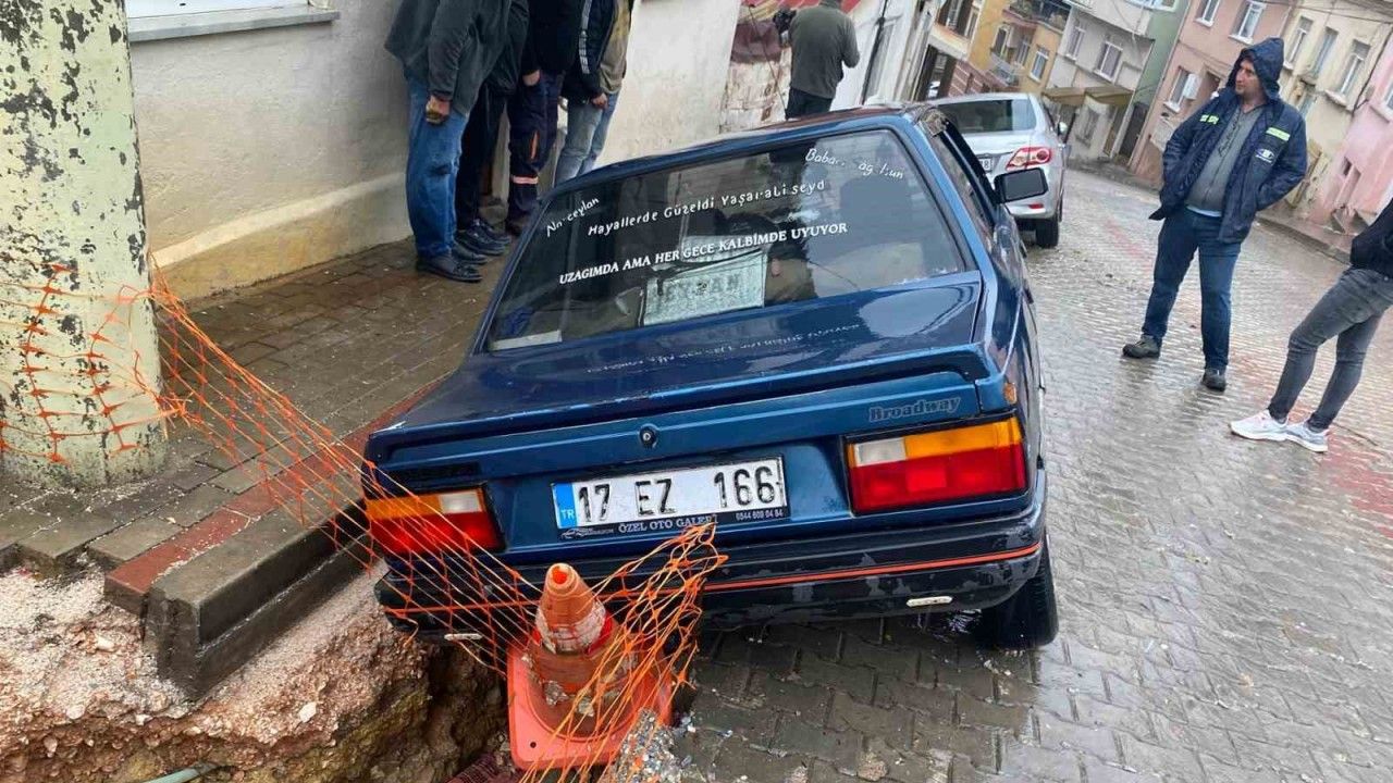 Olay, Biga ilçesi Hamdibey mahallesi Hıdır sokakta meydana geldi. Bir şirketin altyapı çalışması yaptığı bölgede dün akşam saatlerinde beri süren yağış nedeniyle yol çöktü.