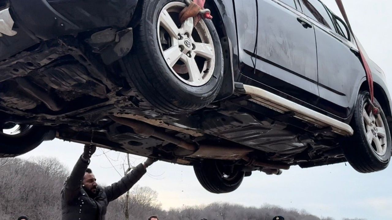 Öte yandan araçta yapılan incelemede ön lastiklerin patlak olduğu belirlendi. Ayrıca vitesin park (P) konumunda olduğu ve el freninin çekili olduğu görüldü. Ancak aracın bu şekilde olay yerinde mi bulunduğu, yoksa dalgıçlar tarafından çıkarma sırasında mı bu konuma getirildiği henüz netlik kazanmadı.