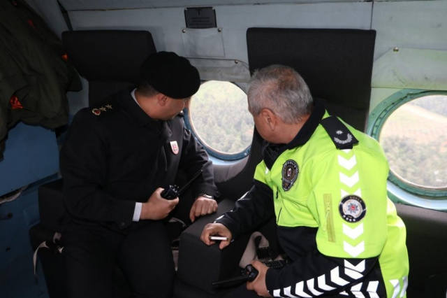 BURSA İL JANDARMA KOMUTANLIĞI VE İL EMNİYET MÜDÜRLÜĞÜ'NE BAĞLI TRAFİK EKİPLERİ, BURSA'DA HAVADAN HELİKOPTER DESTEKLİ DENETİM GERÇEKLEŞTİRDİ.