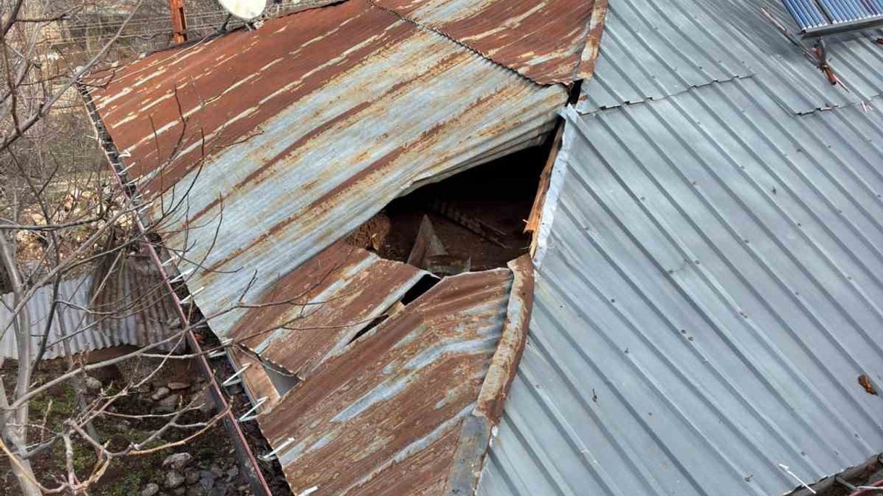 Olay, ilçeye bağlı Dereköy Mahallesi Kuzyaka Mevkiinde meydana geldi. Edinilen bilgiye göre, Hüseyin Ö.'ye ait, kış aylarında boş olan evin üzerine aniden büyük bir kaya parçası düştü. Dağdan kopan kaya, önce evin çinko çatısını yırtarak damın toprak zemine saplandı. Olay anında evde kimse bulunmadığı öğrenilirken, evde maddi hasar oluştu.