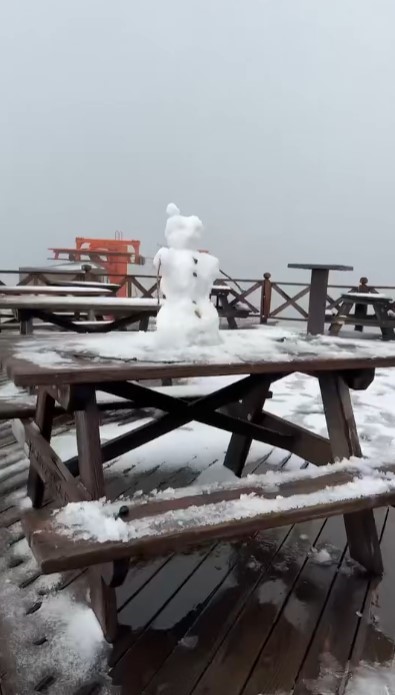 Sabah saatlerinde zirveye çıkan ziyaretçiler, beyaz örtüyle kaplanan dağ manzarasını fotoğraflayarak sosyal medyada paylaştı.